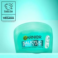 Crema hidratanta cu acid salicilic Garnier Pure Active are textura ultra-lejera, se absoarbe rapid, ofera hidratare 48h, reduce imperfectiunile, matifiaza si reduce cu 48% imperfectiunile, controland excesul de sebum.